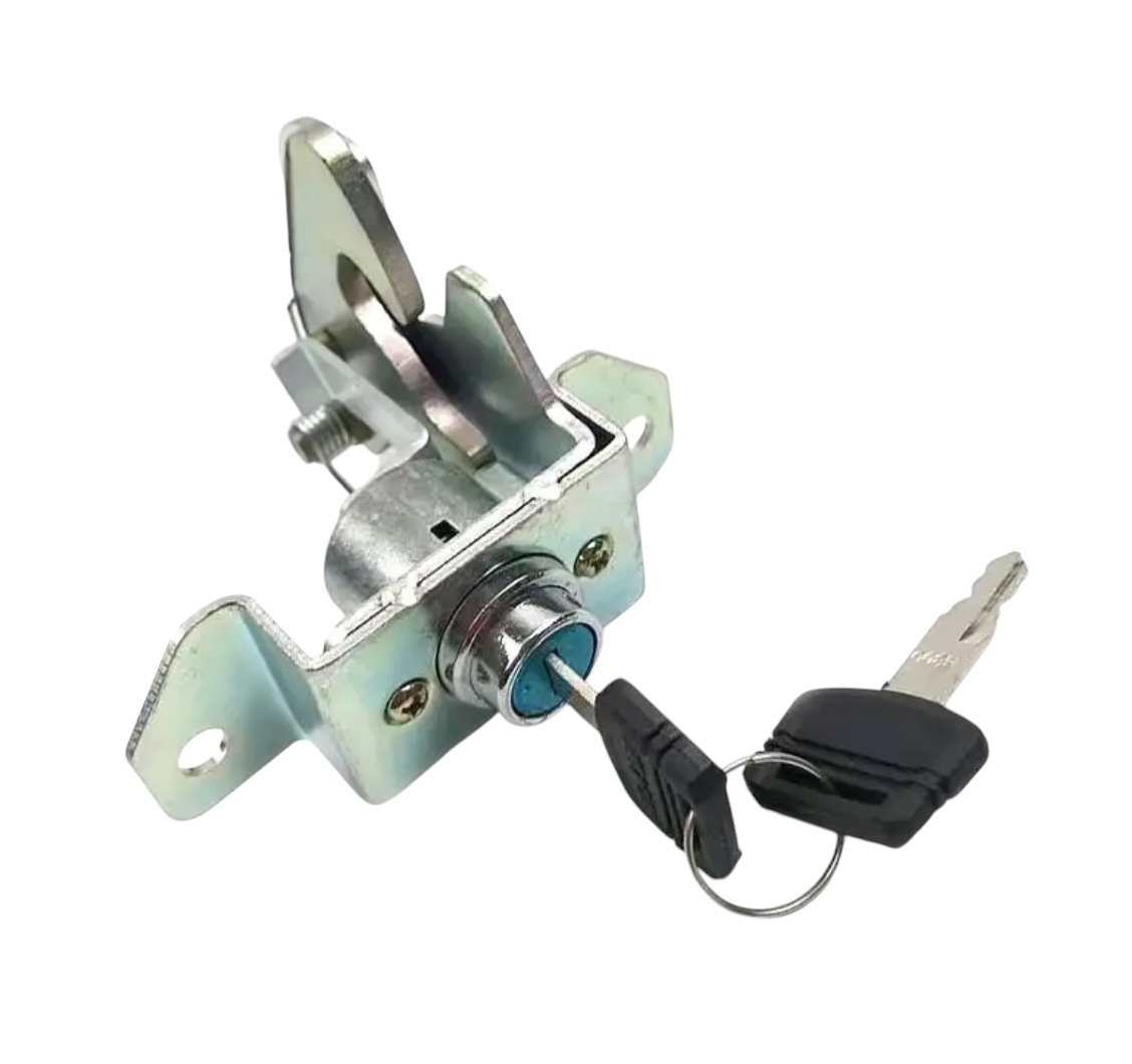 Cerradura para compartimiento de herramientas para excavadoras John Deere e Hitachi modelos 120D, 130P, 130GLC, 160D, 160GLC, 160P, 180GLC, 200G, 200DLC, 210P, 210GLC, 2144G, 240DLC, 250GLC, 250P, 270DLC, 290GLC, 290P, 350P, 350GLC, Zaxis160LC-3, Zaxis200LC-3, Zaxis210LC-5G, Zaxis240LC-3, Zaxis250LC-5G, Zaxis350LC-3, Zaxis350LC-5G.