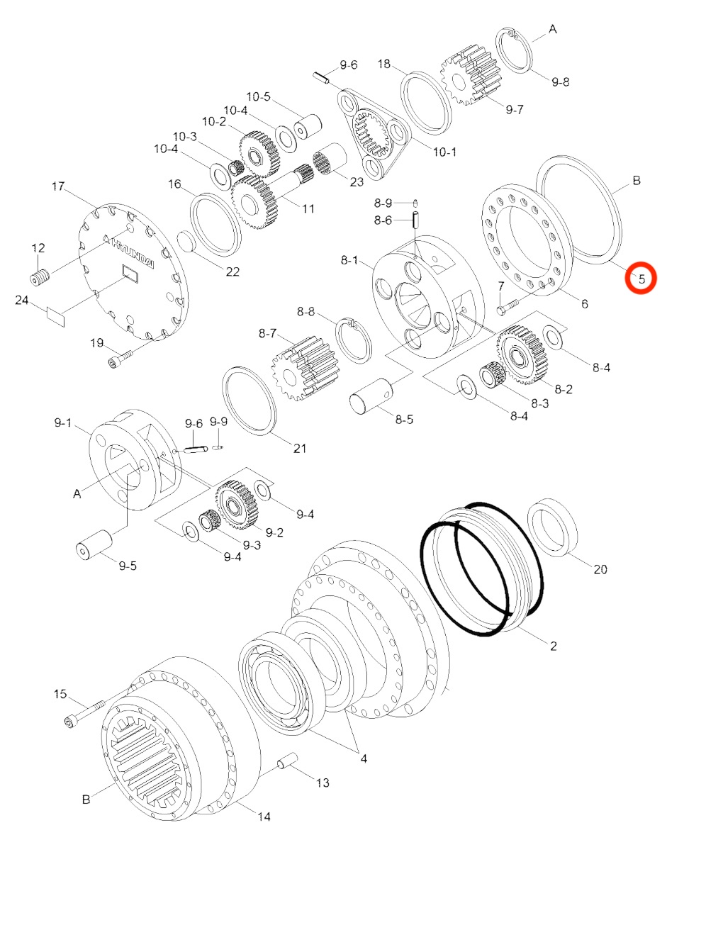 Golilla de ajuste (STD) para mando final de excavadoras Hyundai serie, aplica para modelos: R250LC7, R250LC7A, R250LC9, R250LC9A, R260LC9S, R290LC7, R290LC7A, R290LC7H, R290LC9, R290LC9MH, R300LC7, R300LC9A, R300LC9S, R300LC9SH, R305LC7, R320LC7, R320LC7A, R320LC9, R330LC9A, R330LC9S