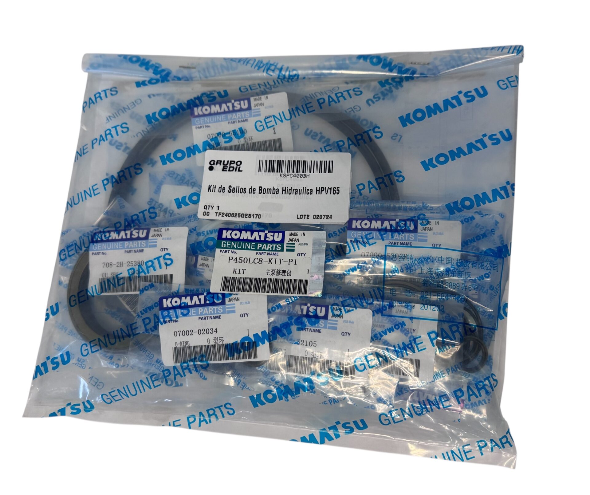 Kit de sellos para reparación de bomba Hidráulica Komatsu HPV165 para aplicación en excavadoras PC400-7, PC400LC-7, PC400-8, PC400LC-8,PC450-7, PC450LC-7, PC450-8, PC450LC-8, PC500LC-8, PC550LC-8, WA500-6, WA500-7, WA500-8, WA1200-6