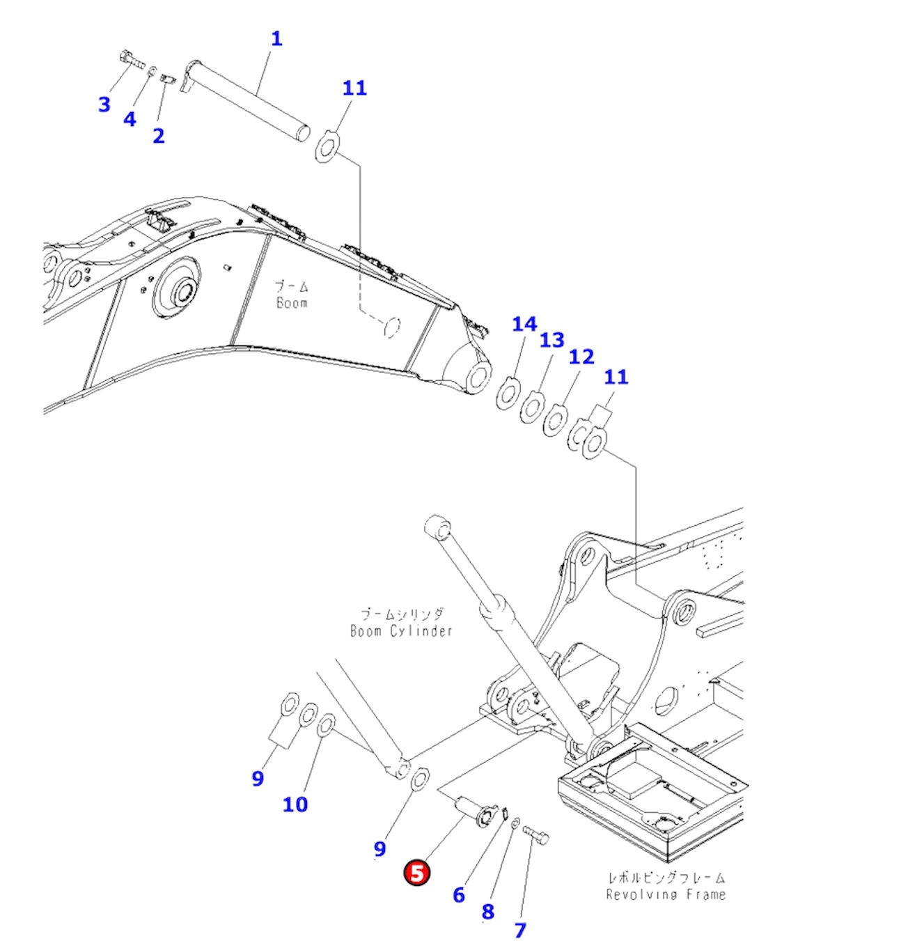 Pasador de Cilindro de Boom para Excavadoras Komatsu. Dimensiones:100×290